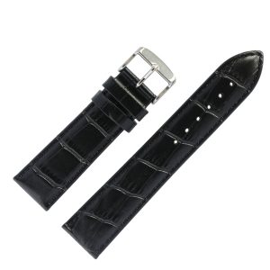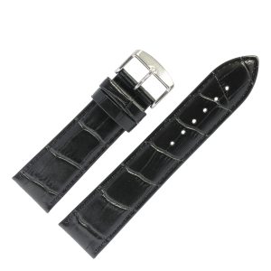Ремешок кожаный, стиль «Классика», черный, 24 мм, пряжка-белый металл