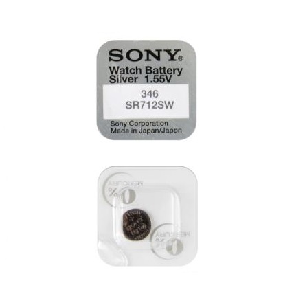 Высококачественная часовая батарейка Sony 346 (SR712SW) используется в часах с низким и равномерным потреблением электроэнергии. К таким часам относятся электронные часы со стрелками, так называемые аналоговые часы и цифровые часы, жидкокристаллические, без дополнительных функции и без подсветки циферблата. Оригинальная часовая батарейка от Sony никогда не протечёт и не испортит, таким образом, механизм ваших наручных часов. А так же можно сказать, что срок службы этой батарейки может составить от 3 до 5 лет, при обязательных условиях, что часовой механизм в ваших часах высококлассный, а сама замена батарейки прошла в авторизованной, профессиональной часовой мастерской.
