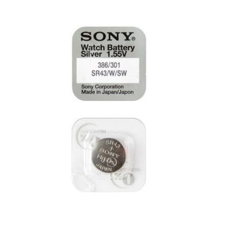 Высококачественная часовая батарейка Sony 386/301 (SR43W/SW) используется одинаково в часах с низким и высоким потреблением электроэнергии. Оригинальная часовая батарейка от Sony никогда не протечёт и не испортит, таким образом, механизм ваших наручных часов. А так же можно сказать, что срок службы этой батарейки может составить от 3 до 5 лет, при обязательных условиях, что часовой механизм в ваших часах высококлассный, а сама замена батарейки прошла в авторизованной, профессиональной часовой мастерской.