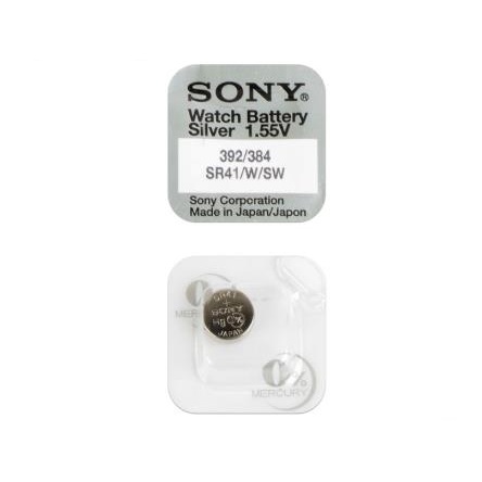 Высококачественная часовая батарейка Sony 392/384 (SR41W/SW) используется одинаково в часах с низким и высоким потреблением электроэнергии. Оригинальная часовая батарейка от Sony никогда не протечёт и не испортит, таким образом, механизм ваших наручных часов. А так же можно сказать, что срок службы этой батарейки может составить от 3 до 5 лет, при обязательных условиях, что часовой механизм в ваших часах высококлассный, а сама замена батарейки прошла в авторизованной, профессиональной часовой мастерской.