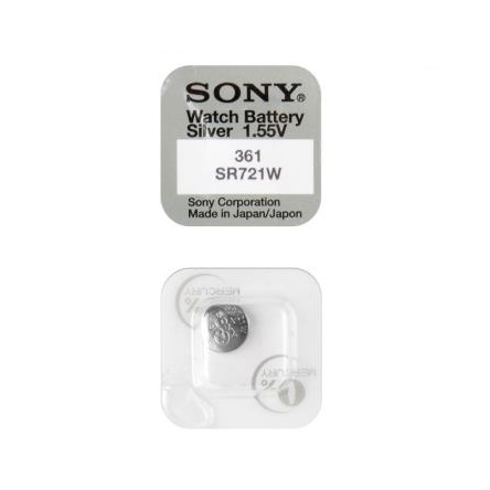 Высококачественная часовая батарейка Sony 361 (SR721W) используется в наручных часах с высоким и неравномерным электропотреблением: аналоговых и цифровых часах с дополнительными функциями и подсветкой циферблата, в игровых микро приставках, радиобрелках, камерах и т. д. В таком же форм-факторе имеется часовая батарейка Sony 362 (SR721SW) используется в часах с низким и равномерным потреблением электроэнергии. К таким часам относятся электронные часы со стрелками, так называемые аналоговые часы и цифровые часы, жидкокристаллические, без дополнительных функции и без подсветки циферблата. Оригинальная часовая батарейка от Sony никогда не протечёт и не испортит, таким образом, механизм ваших наручных часов. А так же можно сказать, что если механизм в ваших часах высококлассный, и замена батарейки прошла в авторизованной, профессиональной часовой мастерской, то срок службы этой батарейки может составить от 3 до 5 лет.