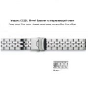 Высококачественный металлический браслет для часов, от английского бренда «Condor», изготовлен из нержавеющей стали 316L методом литья звеньев и последующим их соединением. Конструкция браслета не разъемная, с двойным запорным устройством на пряжке. Окончательное открывание пряжки происходит при одновременном нажатии боковых кнопок. Покрытие очень крепкое и стойкое к внешним природным воздействиям, к истиранию и царапинам из нитрида титана (TiN), цвет — под белый металл. Имеется этот браслет и в размере 22 мм и 24 мм. Данный металлический браслет для часов подходит к мужским часам средней ценовой категории и выше.
