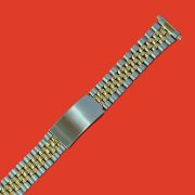 Высококачественный металлический браслет для часов изготовлен из нержавеющей стали методом штамповки звеньев и последующим их соединением. Конструкция браслета не разъемная, а установочный размер — телескопический, имеющий диапазон от 16 до 22 мм. Покрытие очень крепкое и стойкое к внешним природным воздействиям, к истиранию и царапинам, из нитрида титана (TiN), комбинированное — под белый металл и под цвет золота. Данный металлический браслет подходит к моделям часов средней ценовой категории и выше.