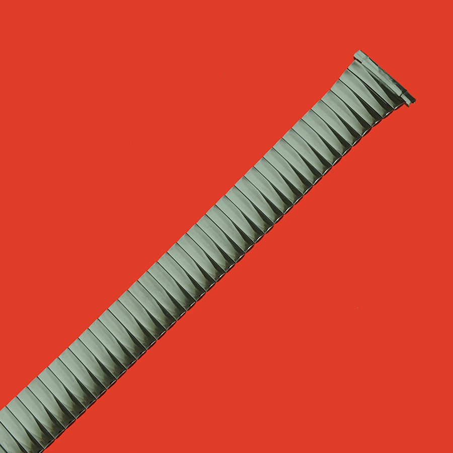 Высококачественный металлический браслет для часов изготовлен из нержавеющей стали методом штамповки звеньев и последующим их соединением. Конструкция браслета выполнена в виде экспандера (резинки). Такое устройство «браслета-резинки» очень удобно в эксплуатации, так как обеспечивает практически мгновенное одевание наручных часов на руку. Крепления браслета к наручным часам — телескопические, имеющие диапазон от 16 мм до 22 мм. Покрытие очень крепкое и стойкое к внешним природным воздействиям, к истиранию и царапинам из нитрида титана (TiN), имеющее цвет — под белый металл. Данный металлический браслет для часов подходит к наручным часам средней ценовой категории и выше.