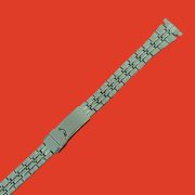 Высококачественный металлический браслет для часов изготовлен из нержавеющей стали методом штамповки звеньев и последующим их соединением. Конструкция браслета не разъемная, а установочный размер — телескопический, имеющий диапазон от 10 до 16 мм. Покрытие очень крепкое и стойкое к внешним природным воздействиям, к истиранию и царапинам из нитрида титана (TiN), цвет — под белый металл. Застёжка имеет предохранитель открывания. Данный металлический браслет подходит к женским моделям наручных часов средней ценовой категории и выше.