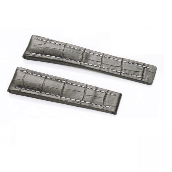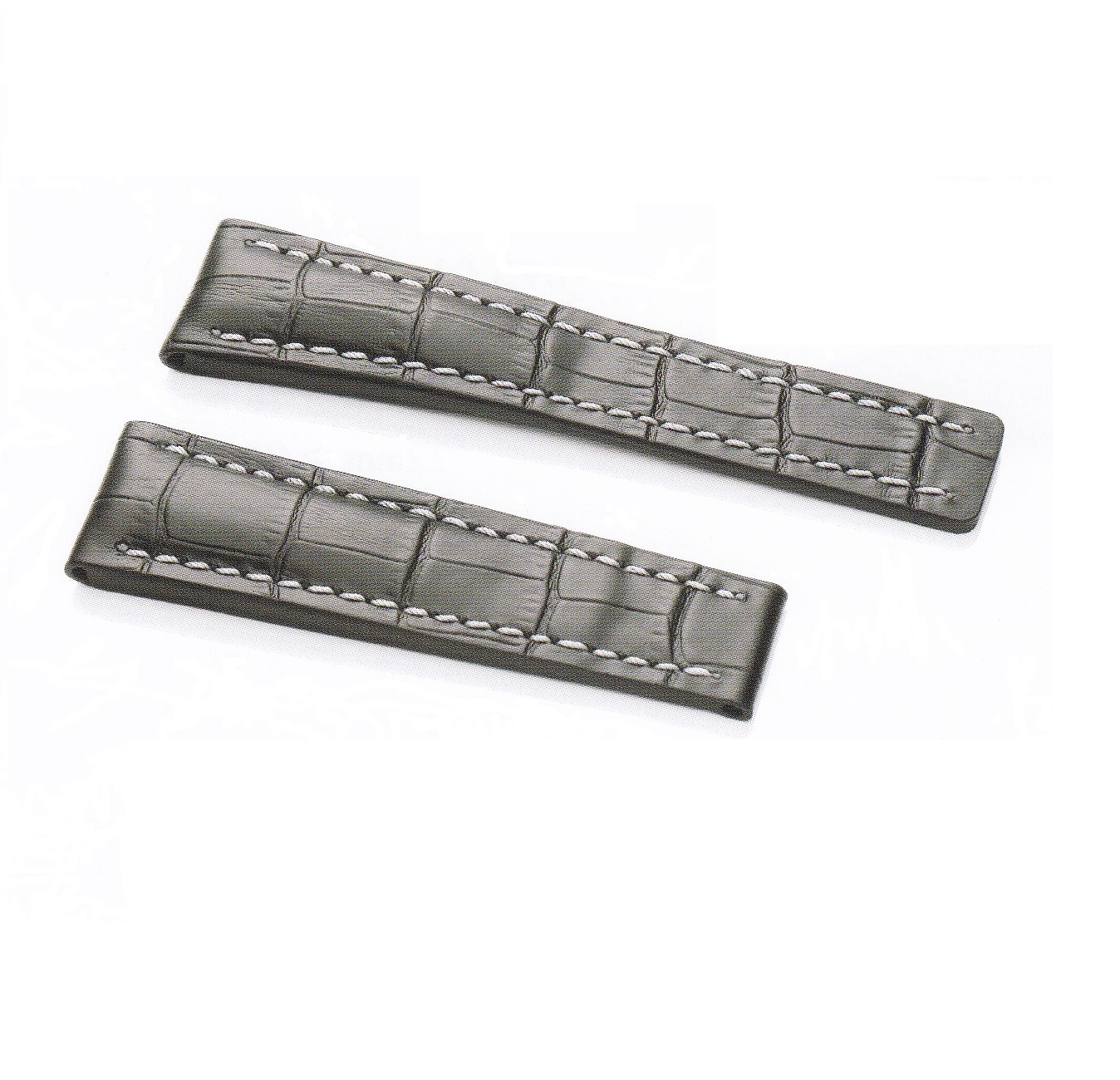 Высококачественный часовой ремешок, из категории «Элит», подходит на замену ремней в классических моделях дорогих наручных часов, в частности, легендарной часовой марки «Breitling». Этот превосходный часовой ремешок изготовлен из мягкой кожи теленка,»итальянской кожи», имитирующей кожу аллигатора, с характерным параллельным рисунком ячеек, так называемой фактурой — зерно аллигатора. Матовый, с белой контрастной строчкой, по краю. Конструкция ремешка — зауженная к пряжке, пухлая к установочной части корпуса часов, концы длинной и короткой части ремешка имеют прямоугольную форму. Данный ремешок поставляется без пряжки, и предполагает использование оригинальной пряжки, в виде «бабочки», которая, до этого, ранее, входила и использовалась в комплекте с корпусом наручных часов. Возможно, заказать, такой же ремешок, в коричневом цвете, модель 693 020 24. Это изделие подходит к наручным часам высокой ценовой категории.