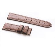 Высококачественный часовой ремешок, из категории «Элит», подходит на замену ремней в классических моделях дорогих наручных часов, в частности, такой легендарной часовой марки, как «Panerai». Этот превосходный часовой ремешок изготовлен из мягкой кожи теленка,»итальянской кожи», имитирующей кожу аллигатора, с характерным параллельным рисунком ячеек, так называемой фактурой — зерно аллигатора. Матовый, с белой контрастной строчкой, по краю. Конструкция ремешка — зауженная к пряжке, пухлая к установочной части корпуса часов. Для надежности и долговечности отверстие установочной части ремня армировано стальной нержавеющей трубкой. Данный ремешок поставляется без пряжки, и предполагает использование оригинальной пряжки, которая, до этого, ранее, входила и использовалась в комплекте с корпусом наручных часов. Возможно, заказать, такой же ремешок, в черном цвете, модель 699 010 24. Доступна эта модель и в размере 22 мм. Это изделие подходит к наручным часам высокой ценовой категории.
