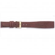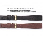 Элегантный ремешок, изготовлен из «итальянской кожи», так называемой, из-за высокого качества производства. В этой модели используется кожа теленка с рисунком, имитирующим кожу верблюда, цвет — коричневый, поверхность — матовая. Модель ремешка — классическая, плоская, со строчкой, по краю, в цвет кожи ремешка. По технологии изготовления —это «обрезной ремень». Производится в виде слоеного пирога, и состоит из трех, четырех слоев, обрезанных по краям.Эти боковые срезы покрыты эластичным компаундом. Концы открытые, с нанесенным на них клеем (клей активируется при помощи ацетона). Пряжка классическая и удобная в носке, изготовлена из нержавеющей стали с напыленным, на нее, покрытием из нитрида титана (TiN), цвет — под цвет золота. Доступнытак же размер в 18 мм. Так же возможно заказать этот размер и в черном цвете, модель 601 012 20. Это изделие подходит к наручным часам средней ценовой категории и выше, с несъемными установочными ушками.