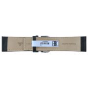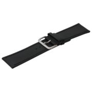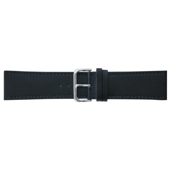 Элитный часовой ремешок, изготовлен из кожи теленка, так называемой «итальянской кожи», из-за высокого качества производства. Цвет — черный, наружная поверхность ремешка — матовая, с характерным классическим зерном натуральной кожи. По технологии изготовления —это «обрезной ремень». Производиться в виде слоеного пирога, и состоит из трех, четырех слоев, обрезанных по краям. Эти боковые срезы покрыты эластичным компаундом и, дополнительно, прошиты ниткой в тон цвета ремешка, а вместе с жесткой внутренней прокладкой придают ремню крепкий, строгий и брутальный вид. Конец длинной части ремешка имеет прямоугольную форму. Пряжка классическая, элегантная и удобная в носке, изготовлена из нержавеющей стали, с покрытием из нитрида титана, цвет — белый металл. Доступны так же размеры этой модели в 28 мм, 30мм и 32 мм. Это изделие подходит к наручным часам выше средней ценовой категории.