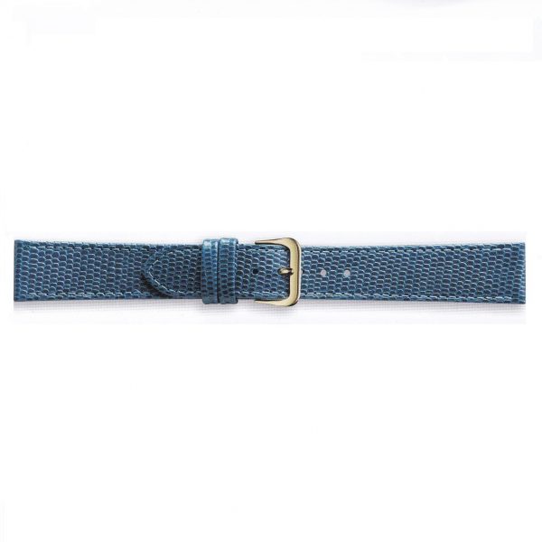 Элегантный ремешок, изготовлен из «итальянской кожи», так называемой, из — за высокого качества производства. В этой модели используется кожа теленка с фактурой, имитирующей кожу ящерицы, цвет — синий, с полублестящей поверхностью. Модель ремешка — классическая, плоская, со строчкой, по краю, в цвет кожи ремешка. Пряжка классическая и удобная в носке, изготовлена из нержавеющей стали с напыленным, на нее, покрытием из нитрида титана (TiN), цвет — под цвет белого металла. Эта модель доступна так же в размерах 8 мм, 10мм, 12 мм, 14 мм, 16 мм и 20 мм. Так же возможно заказать этот размер ремешка с пряжкой под цвет золота и в чёрном цвете, тёмно — коричневом, светло — коричневом, красном и зеленом цвете. Это изделие подходит к наручным часам средней ценовой категории и выше.