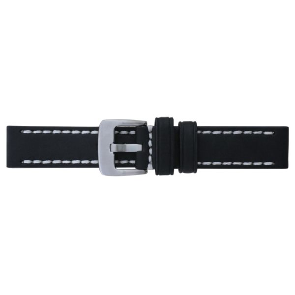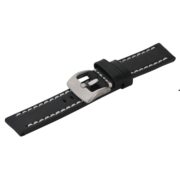 Элитный часовой ремешок, модель «Спорт», изготовлен из кожи теленка (толстый край) и так называемой «итальянской кожи», из-за высокого качества производства. Цвет — черный, наружная поверхность ремешка — матовая, гладкая. По технологии изготовления —это «обрезной ремень». Производиться в виде слоеного пирога, и состоит из трех, четырех слоев, обрезанных по краям. Эти боковые срезы покрыты эластичным компаундом и, дополнительно, прошиты белым шпагатом, а вместе с жесткой внутренней прокладкой придают ремню крепкий, строгий и брутальный вид. Конец длинной части ремешка имеет заостренную форму. Пряжка большая, элегантная, литая и удобная в носке, изготовлена из нержавеющей стали, с покрытием из нитрида титана, под цвет — белый сатин. Доступны так же размеры этой модели в 22 мм и 26 мм, а так же коричневый цвет, модель 319 021 24. Это изделие подходит к наручным часам выше средней ценовой категории.