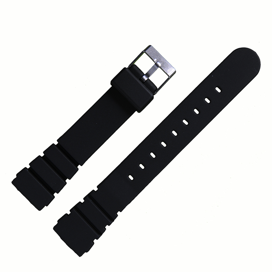Высококачественный часовой ремешок из полиуретана (PU) в стиле «Классический». Плоский, фактурный, цвет черный. Полиуретановые ремешки достаточно мягкие и приятные к телу, комфортные и имеют длительный срок службы в носке. В отличие от силиконовых ремешковов, полиуретановые имеют, как правило, цену в 2 раза меньшую. Пряжка фактурная и удобная в носке, изготовлена из нержавеющей стали с матовой поверхностью. Этот часовой ремешок подходит, на замену, к наручным часам классических моделей, моделей из пластика, а так же к водонепроницаемым часам дайверов. Имееться эта модель и на более большой размер в 20 мм и 22 мм.