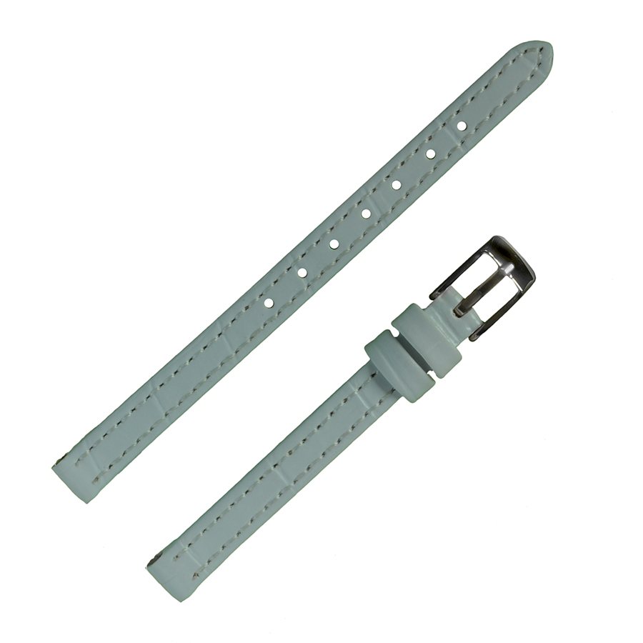 Высококачественный часовой ремешок бюджетной серии в стиле «Классика». Элегантный ремешок, у которого, верх, изготовлен из синтетической кожи на основе полиамидных смол, имитирующей кожу крокодила, цвет — белый, со строчкой, по краю, в цвет ремешка, полу матовый. Низ или обратная сторона этого ремешка изготовлена из натуральной подкладочной кожи. Важными свойствами готовых изделий из синтетической кожи, изготовленной на основе полиамидных смол, являются: жесткость, прочность, устойчивость формы, гладкость поверхности, устойчивость цвета, износостойкость, низкая гигроскопичность, хорошо переносят действие химических реагентов, и не поддаются биохимическому воздействию. Модель ремешка — классическая, дутая, плоская, зауженная к пряжке. Конец длинной части ремешка имеет полукруглую острую форму. Пряжка классическая, элегантная и удобная в носке, изготовлена из нержавеющей стали с покрытием из нитрида титана, цвет — белый металл. Возможно, заказать блестящую пряжку двух цветов: белый металл или под цвет золота, смотрите в каталоге модель041 092 08 с пряжкой под цвет золота. Это изделие подходит к наручным часам низкой ценовой категории и выше.