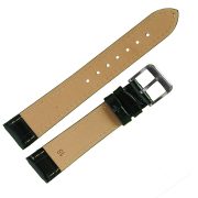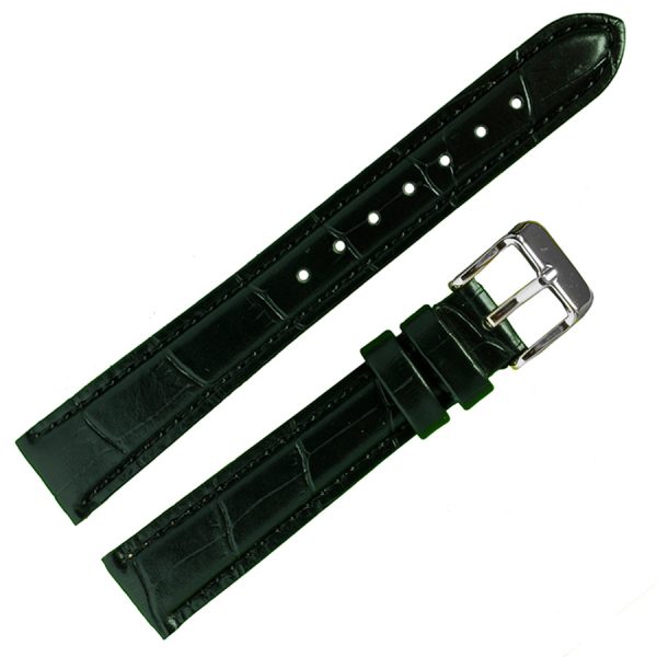 Высококачественный часовой ремешок бюджетной серии в стиле «Классика». Элегантный ремешок, у которого, верх, изготовлен из синтетической кожи на основе полиамидных смол, имитирующей кожу крокодила, цвет черный, со строчкой, по краю, в цвет ремешка, полу матовый. Низ или обратная сторона этого ремешка изготовлена из натуральной подкладочной кожи. Важными свойствами готовых изделий из синтетической кожи, изготовленной на основе полиамидных смол, являются: жесткость, прочность, устойчивость формы, гладкость поверхности, устойчивость цвета, износостойкость, низкая гигроскопичность, хорошо переносят действие химических реагентов, и не поддаются биохимическому воздействию. Модель ремешка — классическая, дутая (padded-англ.), зауженная к пряжке. Конец длинной части ремешка имеет полукруглую острую форму. Пряжка классическая, элегантная и удобная в носке, изготовлена из нержавеющей стали с покрытием из нитрида титана, цвет — белый металл. Возможно, заказать блестящую пряжку двух цветов: белый металл или под цвет золота, смотрите в каталоге модель 040 012 18 с пряжкой под цвет золота. Возможно заказать эту модель ремешка в белом, тёмно-бордовом, синем, в светло-коричневом и коричневых цветах. Это изделие подходит к наручным часам низкой ценовой категории и выше.
