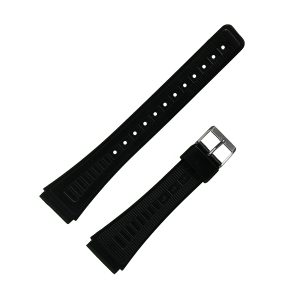 Ремешок пластиковый, 16 мм, модель P89, черный, плоский, пряжка — матовая, металлическая
