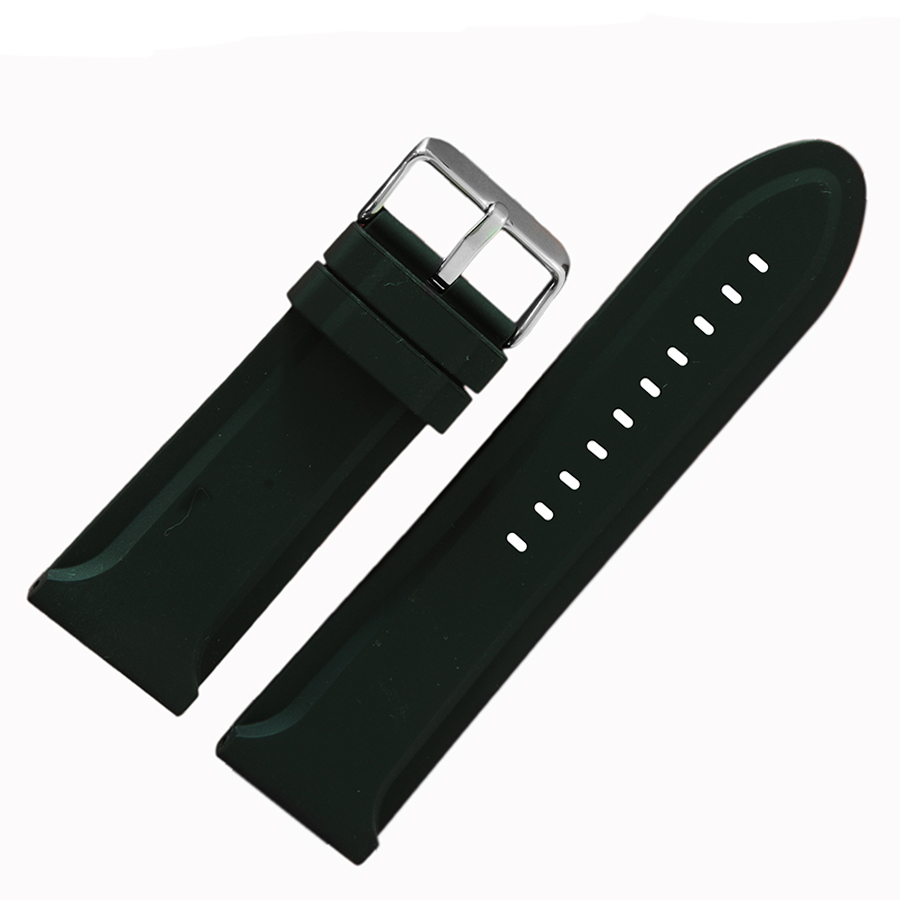 Высококачественный часовой ремешок из силикона в стиле «Спорт». Удлинённый и объёмный, цвет черный. Сликоновые ремешки мягкие и приятные к телу, комфортные и имеют длительный срок службы в носке. Этот часовой ремешок подходит, на замену, к наручным часам спортивных моделей, а так же к водонепроницаемым часам дайверов.