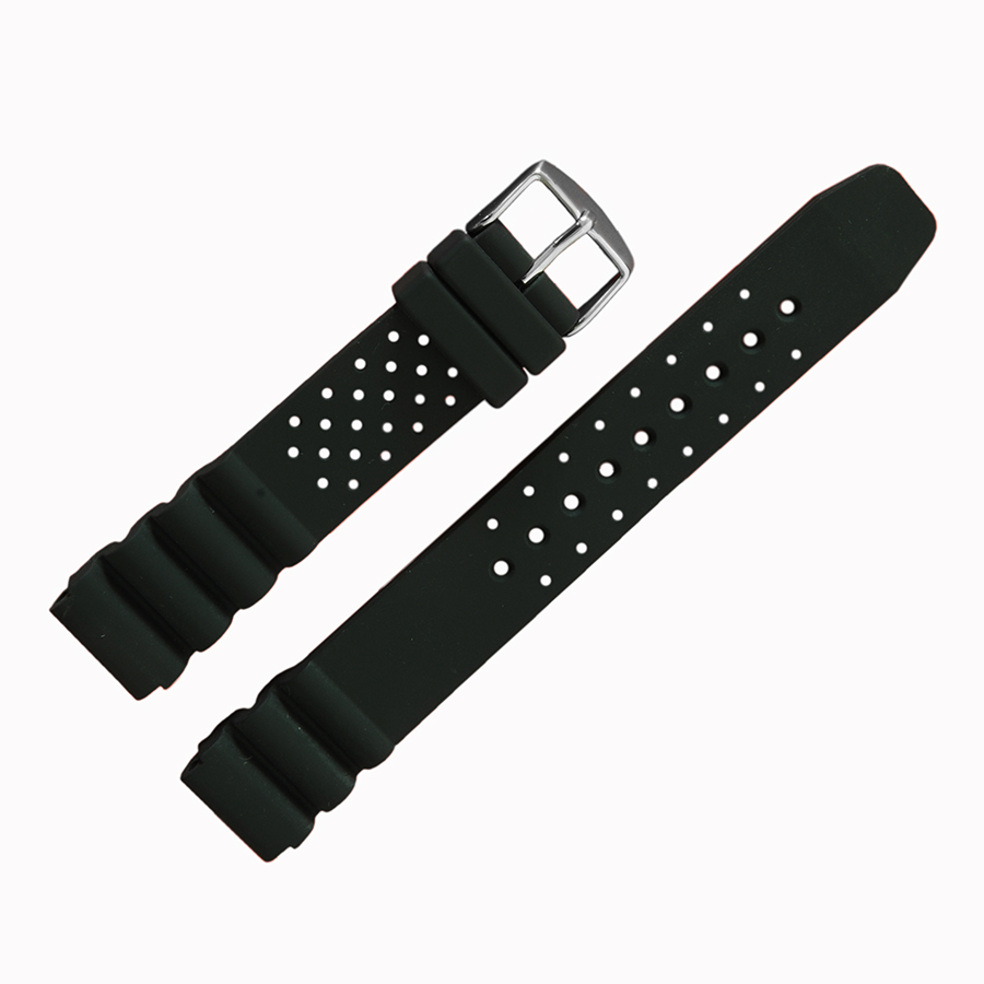 Высококачественный часовой ремешок из силикона в стиле «Спорт». Длинный и объемный, цвет черный. Сликоновые ремешки мягкие и приятные к телу, комфортные и имеют длительный срок службы в носке. Этот часовой ремешок подходит, на замену, к наручным часам спортивных моделей, а так же к водонепроницаемым часам дайверов. Имеются и другие размеры этой модели на 20 мм, 22 мм и 24 мм.