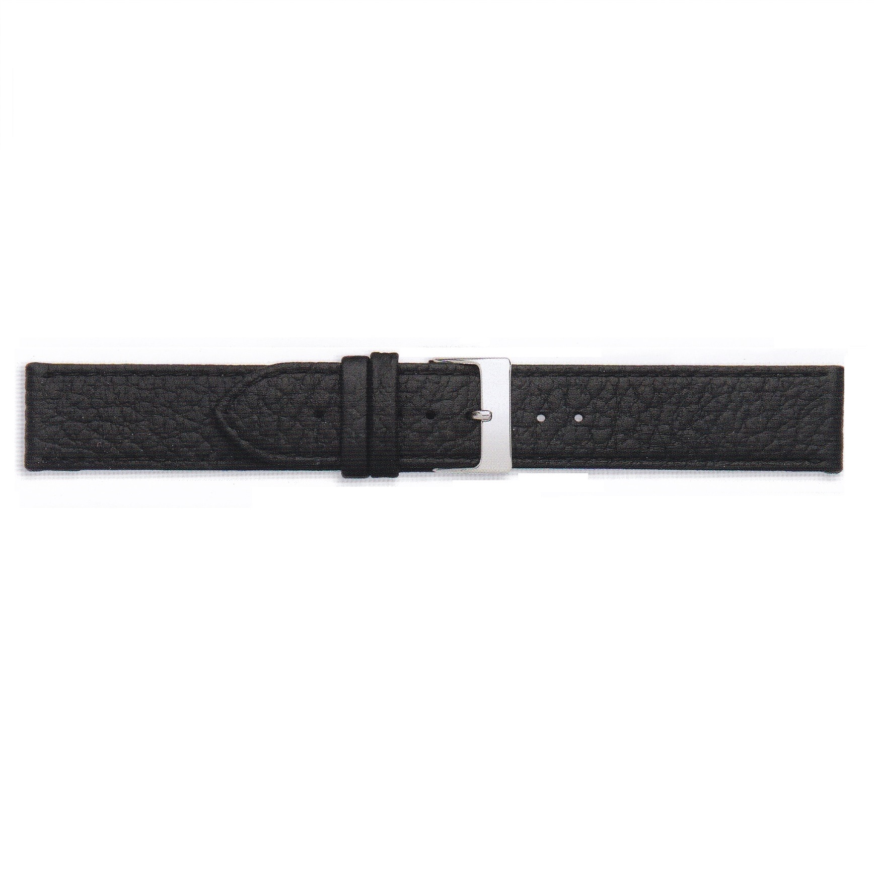 Роскошный ремешок от всемирно известного бренда Condor , изготовлен из воловьей кожи, цвет — чёрный, поверхность — матовая, с характерным, для этого вида кожи, грубым и привлекательным рисунком. На сайте данная модель представлена в установочных размерах 12 мм, 14 мм, 16 мм, 18 мм, 20 мм и 22 мм. Данная модель производится в большой поллитре цветов: чёрном, коричневом, светло — коричневом, сером, синем, красном, кирпичном, зелёном, тёмно — фиолетовом, оранжевом и тёмно — бордовом цвете. Конструкция ремешка — классическая, плоская, прямая, по краям прошит ниткой в цвет кожи ремешка. Конец длинной части имеет заостренную форму. Пряжка фактурная, элегантная и удобная в носке, изготовлена из нержавеющей стали с покрытием из нитрида титана, цвет — белый металл. Это изделие подходит к наручным часам средней ценовой категории и выше.