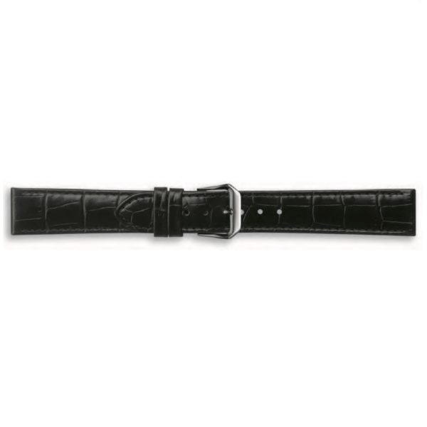 Ремешок от всемирно известного бренда Condor, изготовлен из кожи теленка и так называемой «итальянской кожи», из — за высокого качества производства, имитирующей кожу крокодила, с характерным параллельным рисунком ячеек, цвет — чёрный, поверхность — глянцевая. Конструкция ремешка — классическая, зауженная, дутая, со строчкой, по краю, в цвет кожи ремешка. Пряжка классическая и удобная в носке, изготовлена из нержавеющей стали с напыленным, на нее, покрытием из нитрида титана (TiN), цвет — белый металл. Доступны так же размеры в 20 мм. Так же возможно заказать этот размер в коричневом и в рыжем цвете. Это изделие подходит к наручным часам средней ценовой категории и выше.