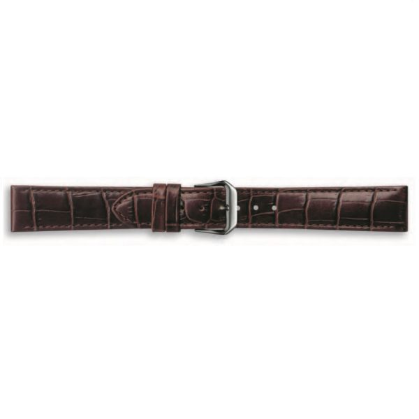 Ремешок от всемирно известного бренда Condor, изготовлен из кожи теленка и так называемой «итальянской кожи», из — за высокого качества производства, имитирующей кожу крокодила, с характерным параллельным рисунком ячеек, цвет — коричневый, поверхность — глянцевая. Конструкция ремешка — классическая, зауженная, дутая, со строчкой, по краю, в цвет кожи ремешка. Пряжка классическая и удобная в носке, изготовлена из нержавеющей стали с напыленным, на нее, покрытием из нитрида титана (TiN), цвет — белый металл. Доступны так же размеры в 20 мм. Так же возможно заказать этот размер в чёрном и в рыжем цвете. Это изделие подходит к наручным часам средней ценовой категории и выше.