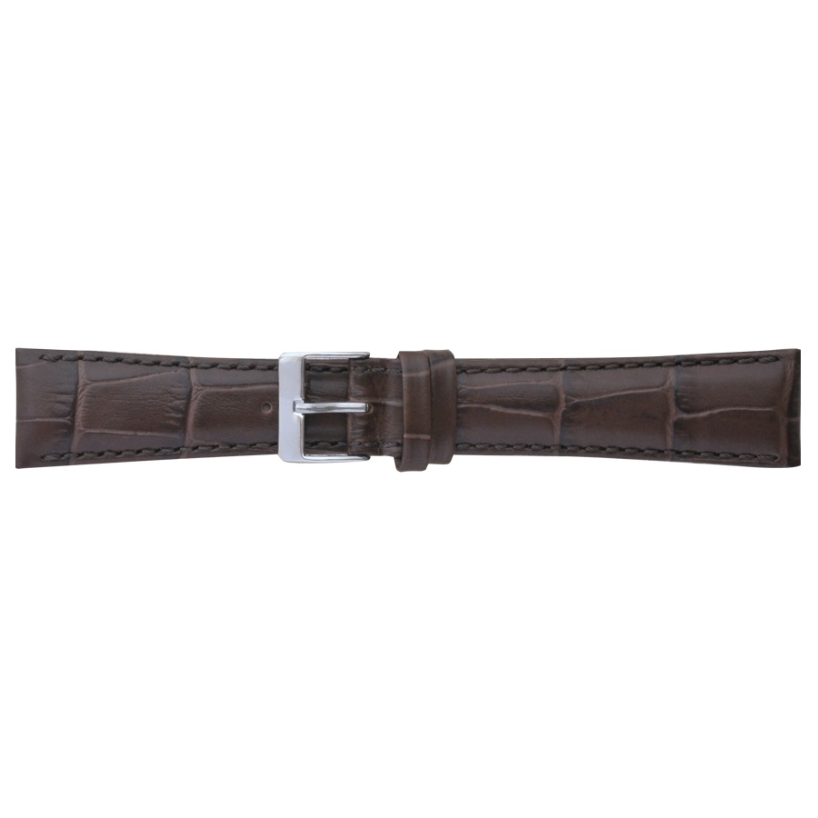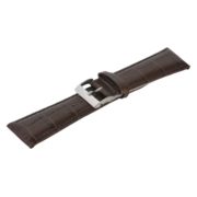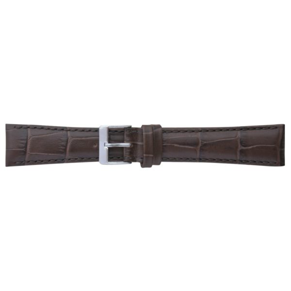 Элегантный ремешок, изготовлен из кожи теленка и так называемой «итальянской кожи», из — за высокого качества производства, имитирующей кожу аллигатора, с характерным параллельным рисунком ячеек, цвет — коричневый, поверхность — полуматовая. Конструкция ремешка — классическая, зауженная, пухлая (дутая), со строчкой, по краю, в цвет кожи ремешка. Пряжка классическая и удобная в носке, изготовлена из нержавеющей стали с напыленным, на нее, покрытием из нитрида титана (TiN), цвет — белый металл. Доступны так же размеры в 18 мм, 20 мм и 24 мм. Так же возможно заказать этот размер в чёрном цвете, в светло — коричневом и в белом цвете. Это изделие подходит к наручным часам средней ценовой категории и выше.