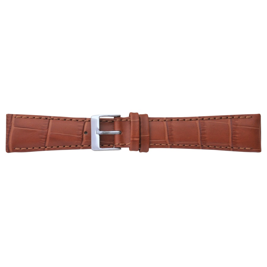 Элегантный ремешок, изготовлен из кожи теленка и так называемой «итальянской кожи», из — за высокого качества производства, имитирующей кожу аллигатора, с характерным параллельным рисунком ячеек, цвет — светло — коричневый, поверхность — полуматовая. Конструкция ремешка — классическая, зауженная, пухлая (дутая), со строчкой, по краю, в цвет кожи ремешка. Пряжка классическая и удобная в носке, изготовлена из нержавеющей стали с напыленным, на нее, покрытием из нитрида титана (TiN), цвет — белый металл. Доступны так же размеры в 18 мм, 20 мм и 24 мм. Так же возможно заказать этот размер в чёрном цвете, в коричневом и в белом цвете. Это изделие подходит к наручным часам средней ценовой категории и выше.