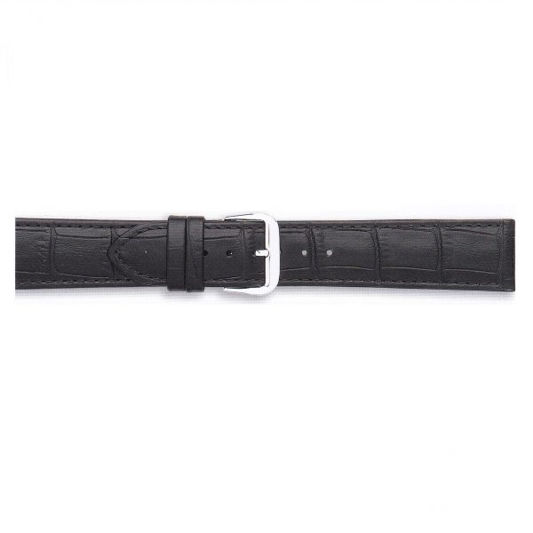 Элегантный ремешок, изготовлен из кожи теленка и так называемой «итальянской кожи», из — за высокого качества производства, имитирующей кожу аллигатора, с характерным параллельным рисунком ячеек, цвет — черный, поверхность — матовая. Конструкция ремешка — классическая, дутая, со строчкой, по краю, в цвет кожи ремешка. Пряжка классическая и удобная в носке, изготовлена из нержавеющей стали с напыленным, на нее, покрытием из нитрида титана (TiN), цвет — белый металл. Доступны так же размеры в 12 мм, 14 мм, 16 мм, 18 мм, 20 мм, 24 мм, 34 мм и 36 мм. Так же возможно заказать этот размер в коричневом цвете с пряжкой под цвет золота, модель 305 022 22 и в белом цвете с пряжкой под цвет белого металла. Это изделие подходит к наручным часам средней ценовой категории и выше.