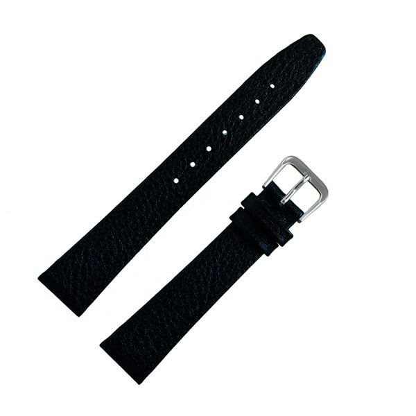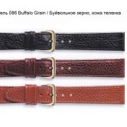 Элегантный ремешок, изготовлен из кожи теленка и так называемой «итальянской кожи», из-за высокого качества производства, с выделкой (фактурой) под кожу буйвола, цвет — черный, поверхность — матовая. На сайте данная модель представлена в нечетных размерах 13 мм, 17 мм, и 19 мм. Конструкция ремешка — классическая, плоская. Конец длинной части ремешка имеет заостренную форму. Пряжка классическая, элегантная и удобная в носке, изготовлена из нержавеющей стали с покрытием из нитрида титана, цвет — белый металл. Возможно, заказать, такой же ремешок, с пряжкой под цвет золота, модель 086 012 17. Это изделие подходит к наручным часам средней ценовой категории и выше.
