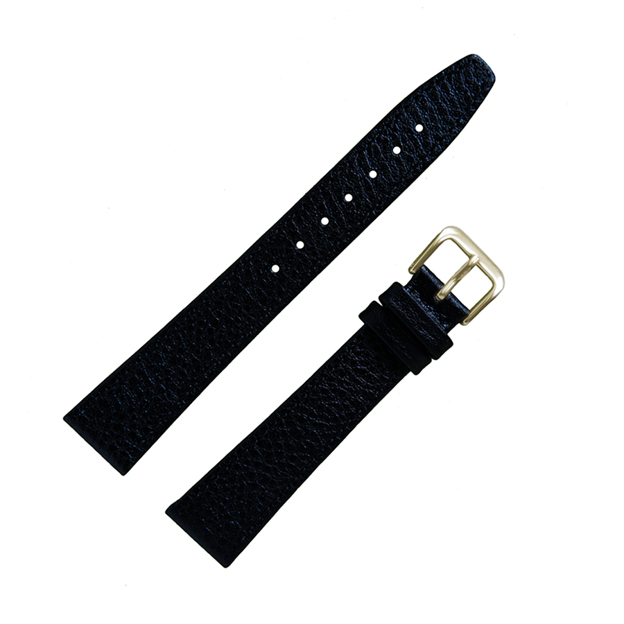 Элегантный ремешок, изготовлен из кожи теленка и так называемой «итальянской кожи», из-за высокого качества производства, с выделкой (фактурой) под кожу буйвола, цвет — черный, поверхность — матовая. На сайте данная модель представлена в нечетных размерах 13 мм, 17 мм, и 19 мм. Конструкция ремешка — классическая, плоская. Конец длинной части ремешка имеет заостренную форму. Пряжка классическая, элегантная и удобная в носке, изготовлена из нержавеющей стали с напыленным, на нее, покрытием из нитрида титана (TiN), имитирующим цвет золота. Возможно, заказать, такой же ремешок, с пряжкой под цвет — белый металл, модель 086 011 17. Это изделие подходит к наручным часам средней ценовой категории и выше.
