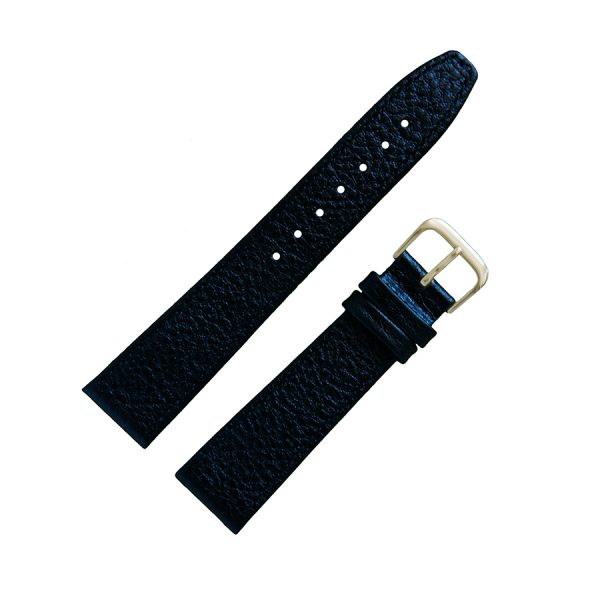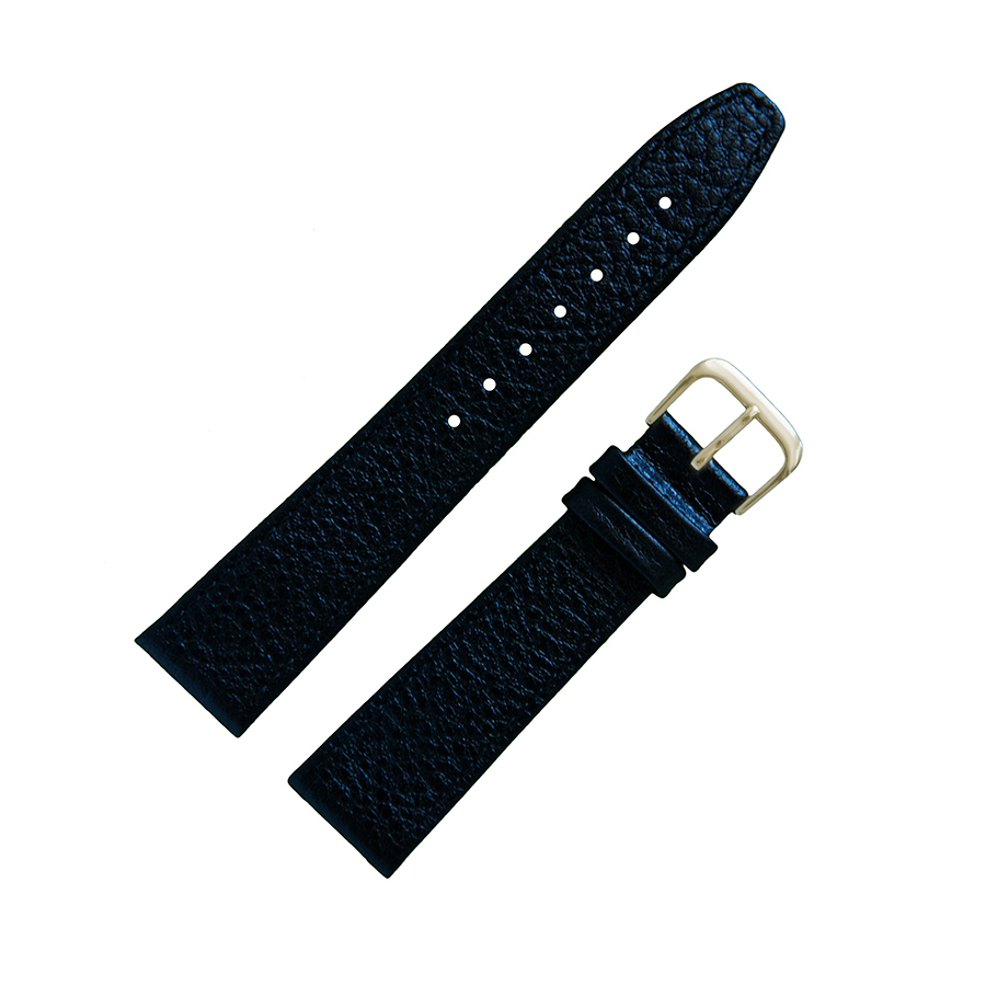 Элегантный ремешок, изготовлен из кожи теленка и так называемой «итальянской кожи», из-за высокого качества производства, с выделкой (фактурой) под кожу буйвола, цвет — черный, поверхность — матовая. На сайте данная модель представлена в нечетных размерах 13 мм, 17 мм, и 19 мм. Конструкция ремешка — классическая, плоская. Конец длинной части ремешка имеет заостренную форму. Пряжка классическая, элегантная и удобная в носке, изготовлена из нержавеющей стали с напыленным, на нее, покрытием из нитрида титана (TiN), имитирующим цвет золота. Возможно, заказать, такой же ремешок, с пряжкой под цвет — белый металл, модель 086 011 19. Это изделие подходит к наручным часам средней ценовой категории и выше.