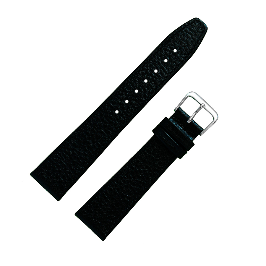 Элегантный ремешок, изготовлен из кожи теленка и так называемой «итальянской кожи», из-за высокого качества производства, с выделкой (фактурой) под кожу буйвола, цвет — черный, поверхность — матовая. На сайте данная модель представлена в нечетных размерах 13 мм, 17 мм, и 19 мм. Конструкция ремешка — классическая, плоская. Конец длинной части ремешка имеет заостренную форму. Пряжка классическая, элегантная и удобная в носке, изготовлена из нержавеющей стали с покрытием из нитрида титана, цвет — белый металл. Возможно, заказать, такой же ремешок, с пряжкой под цвет золота, модель 086 012 19. Это изделие подходит к наручным часам средней ценовой категории и выше.