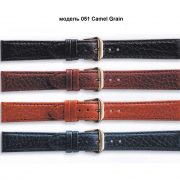 Элегантный ремешок, изготовлен из кожи теленка и так называемой «итальянской кожи», из-за высокого качества производства, с выделкой (фактурой) под верблюжью кожу, цвет — черный, поверхность — матовая. Ремешок, по длине, имеет размер L (208 мм) и подходит на руку с широким запястьем. Конструкция ремешка — классическая, плоская. Конец длинной части ремешка имеет заостренную форму. Пряжка классическая и удобная в носке, изготовлена из нержавеющей стали с напыленным, на нее, покрытием из нитрида титана (TiN), имитирующим цвет золота. Возможно, заказать, такой же ремешок, в темно-коричневом цвете, модель 051 022 20 L и с белой пряжкой, модель 051 021 20 L. Доступен так же размер этой модели в 18 мм, модель 051 012 18 L. Это изделие подходит к наручным часам средней ценовой категории и выше.