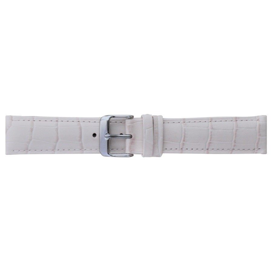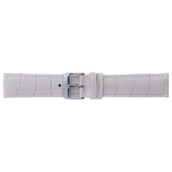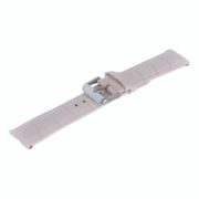 Элегантный ремешок, изготовлен из кожи теленка и так называемой «итальянской кожи», из — за высокого качества производства, с выделкой (фактурой) под кожу крокодила, цвет — розовый, поверхность — глянцевая. Конструкция ремешка — классическая, пухлая (дутая), со строчкой , по краю, в цвет кожи ремешка. Пряжка классическая и удобная в носке, изготовлена из нержавеющей стали с напыленным, на нее, покрытием из нитрида титана (TiN), цвет — белый металл. Эта модель выпускается только с белой пряжкой. Доступны размеры в 18 мм, 20 мм и 24 мм, в 4 цветах: чёрном, синем, белом и светло-розовом цвете. Это изделие подходит к наручным часам средней ценовой категории и выше.