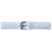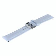Элегантный ремешок, изготовлен из кожи теленка и так называемой «итальянской кожи», из — за высокого качества производства, с выделкой (фактурой) под кожу крокодила, цвет — белый, поверхность — глянцевая. Конструкция ремешка — классическая, пухлая (дутая), со строчкой , по краю, в цвет кожи ремешка. Пряжка классическая и удобная в носке, изготовлена из нержавеющей стали с напыленным, на нее, покрытием из нитрида титана (TiN), цвет — белый металл. Эта модель выпускается только с белой пряжкой. Доступны размеры в 20 мм, 22 мм и 24 мм, в 4 цветах: чёрном, синем, белом и светло-розовом цвете. Это изделие подходит к наручным часам средней ценовой категории и выше.